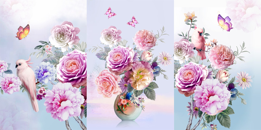 | Thương hiệu: Tranh 3D Tùng Dương | Hình thức: tranh treo tường ghép bộ 3 bức | Tên: tranh bình hoa |