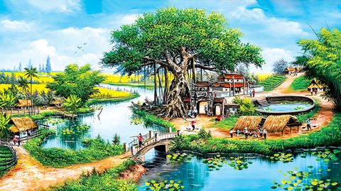 Hình ảnh cây đa, giếng nước, mái đình và con sông thơ mộng của làng quê Việt nam xưa, gợi lên cho mỗi người con xa quê nỗi nhớ nhung, những kỷ niệm tuổi thơ thật đẹp.