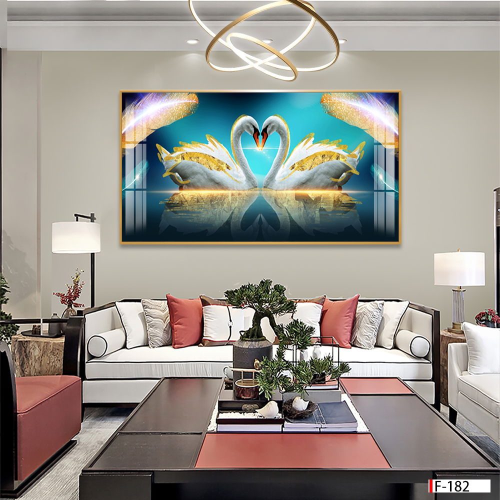 - Tranh đôi thiên nga được làm từ chất liệu PVC bột đá, in UV phủ sứ pha lê Sang trọng. Độ bền cao trên 20 năm.