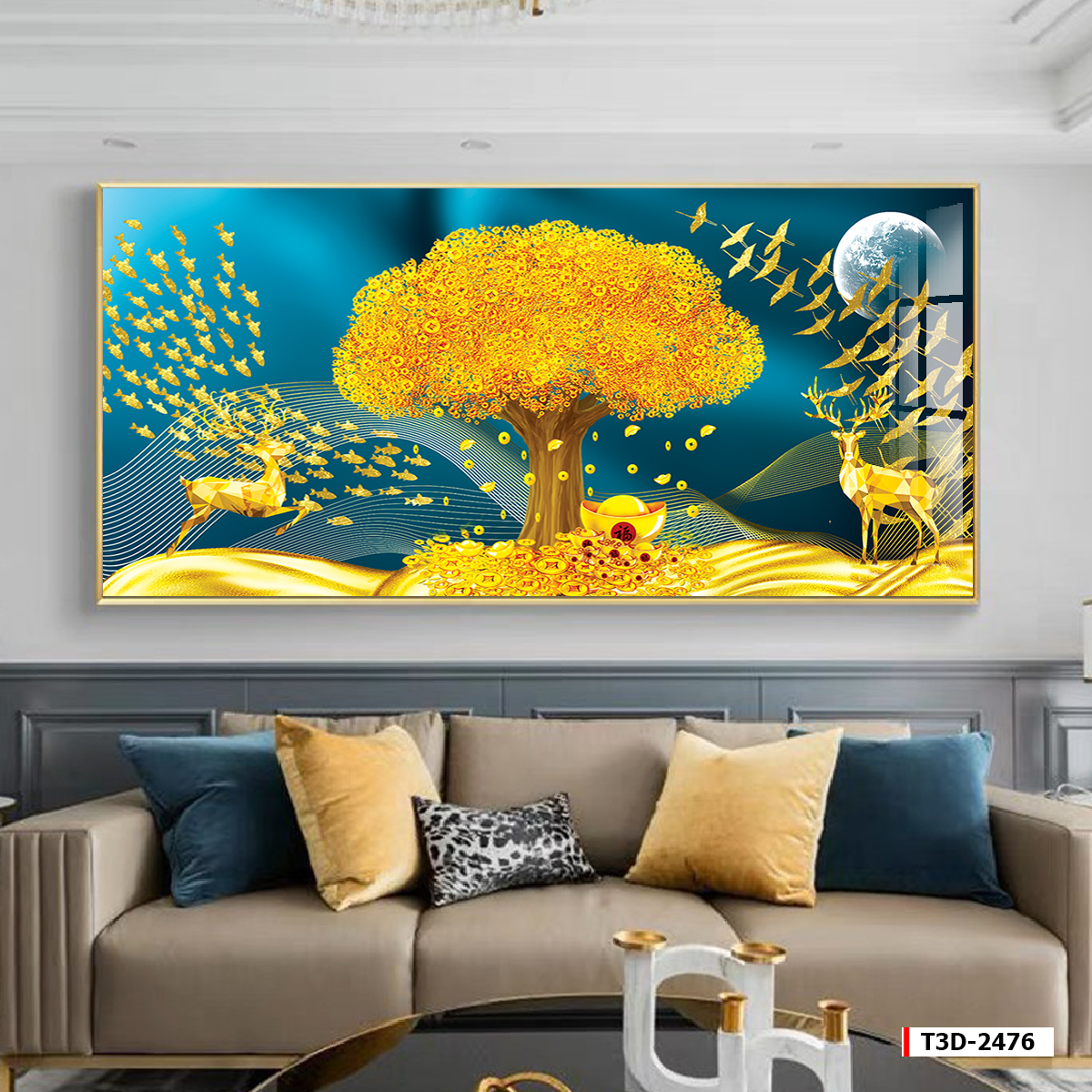 | Xuất xứ: Tranh 3D Tùng Dương, thành phố Hải Phòng, Việt Nam | Vị trí áp dụng: phòng khách | Phong cách: hươu tài lộc |
