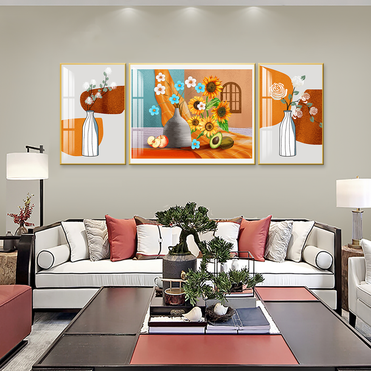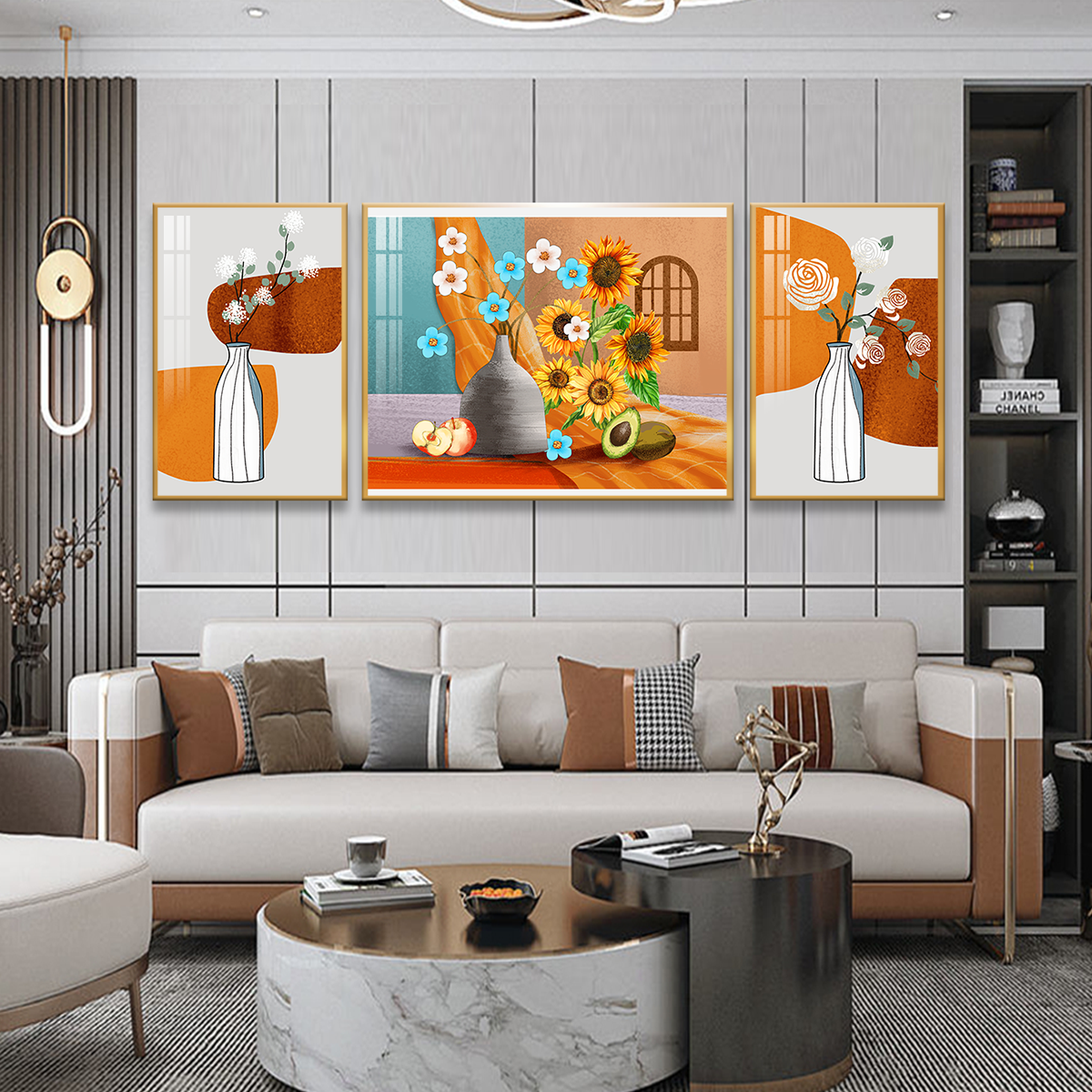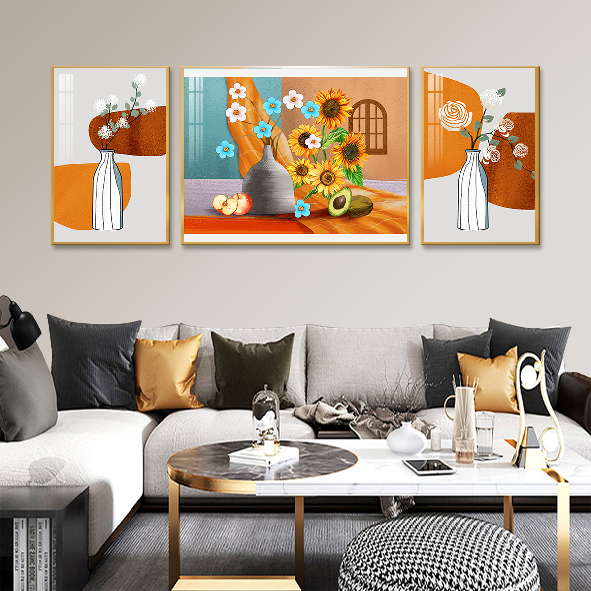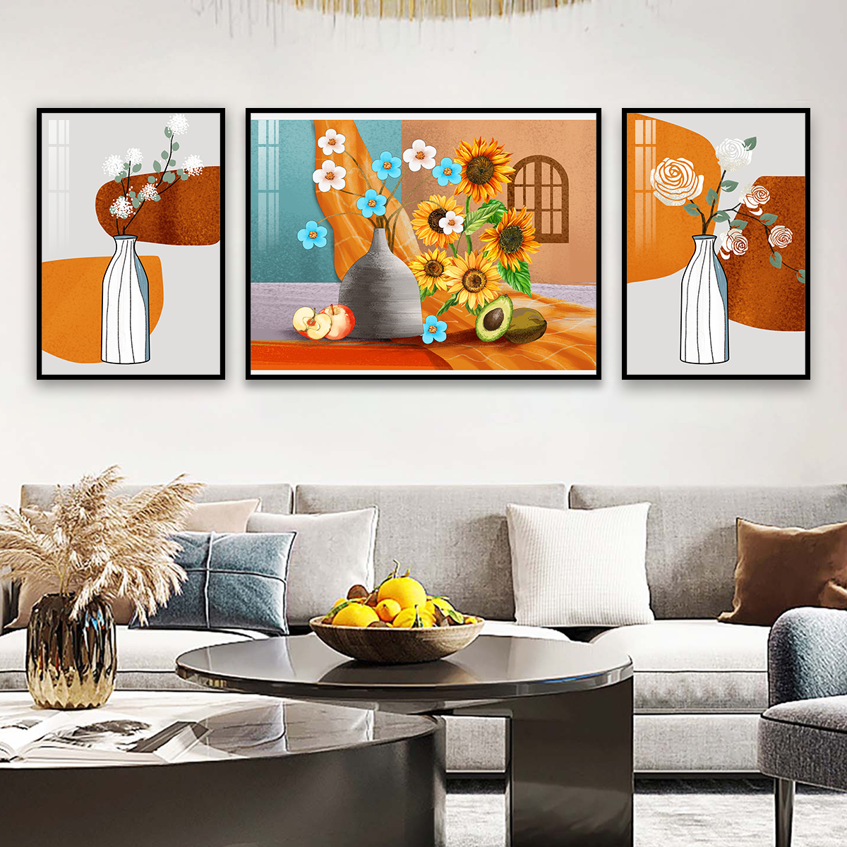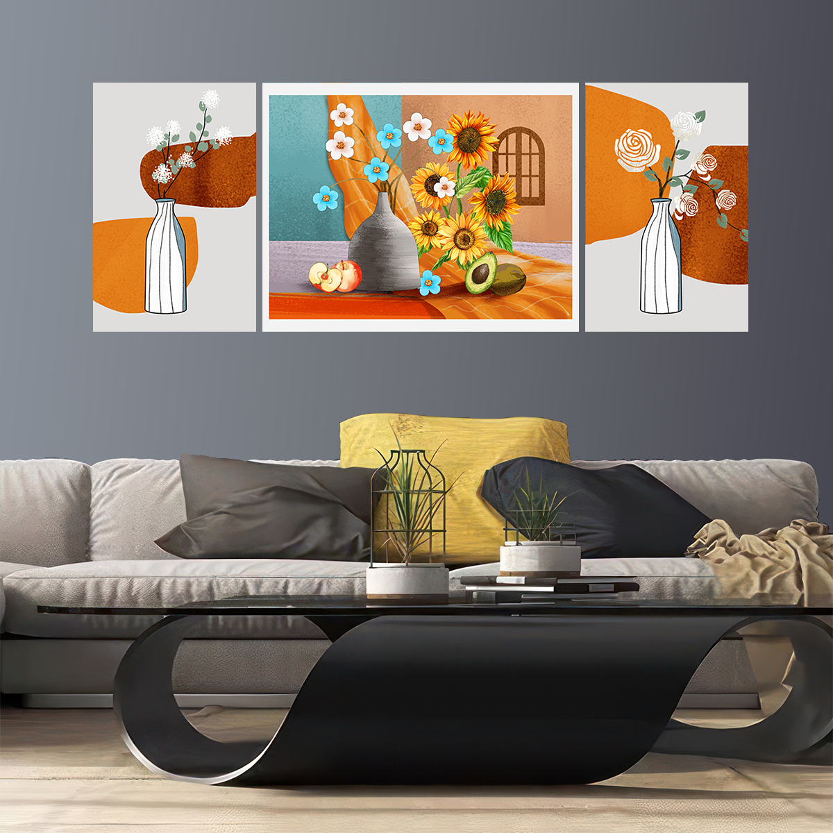 TRANH BÌNH HOA TREO PHÒNG KHÁCH - TRANH GHÉP BỘ 3 BỨC