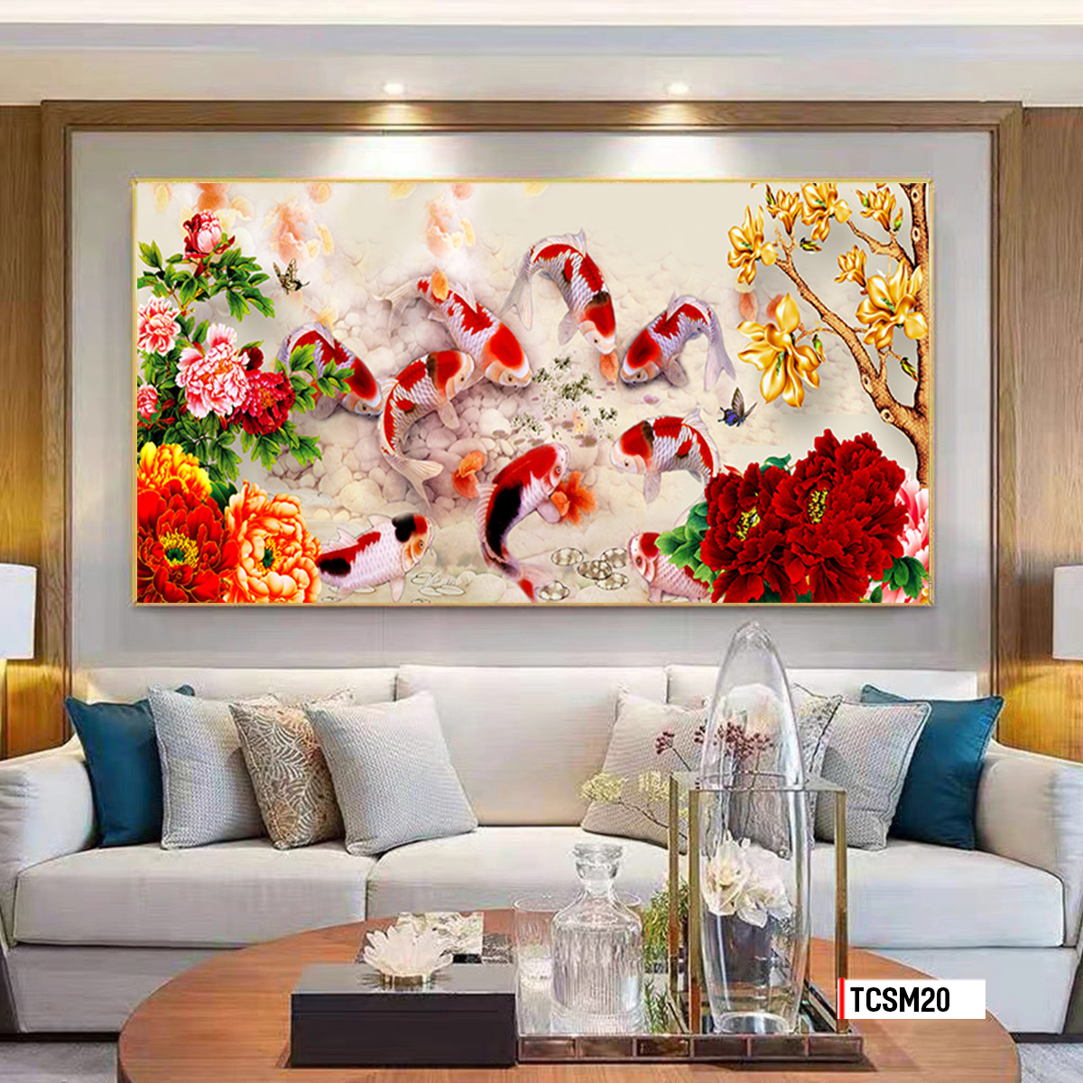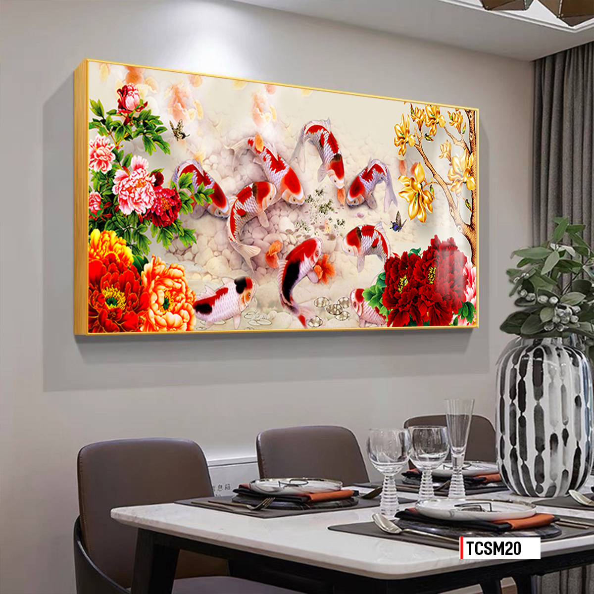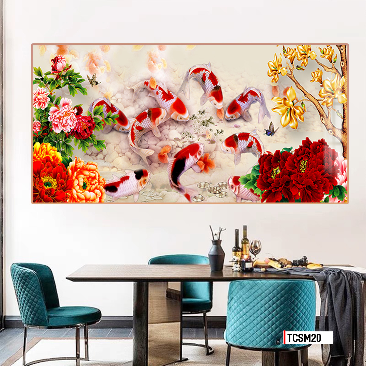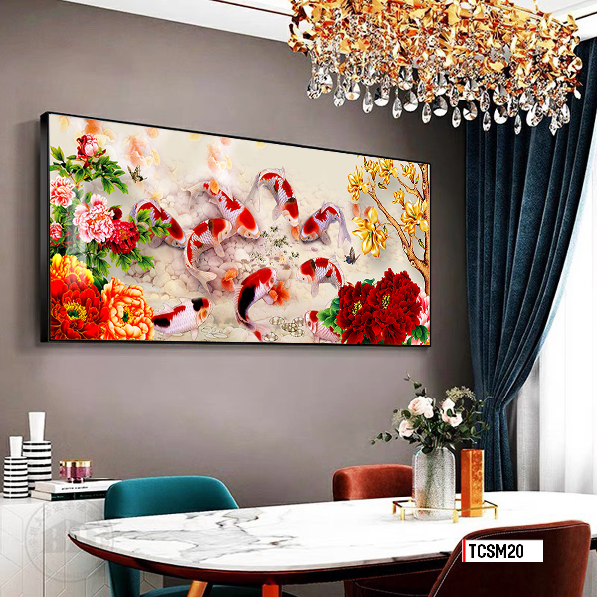 | Thương hiệu: Tranh 3D Tùng Dương | Hình thức: tranh treo tường khổ lớn | Tên: tranh Cửu ngư quần hội |