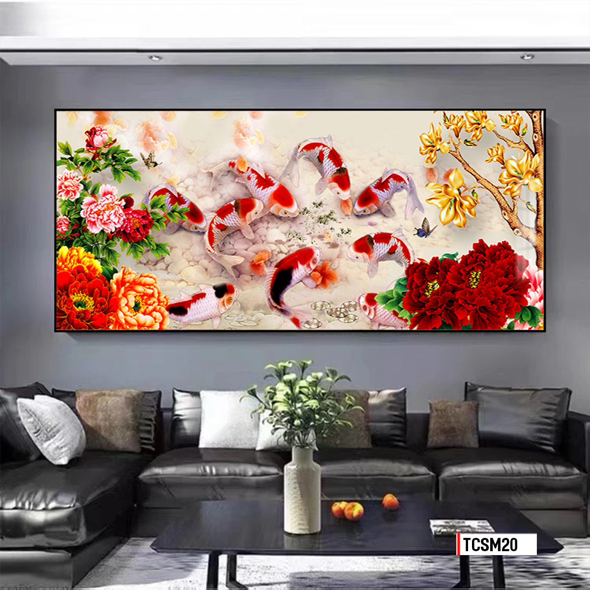 TRANH TREO PHÒNG KHÁCH KHỔ LỚN - TRANH CỬU NGƯ QUẦN HỘI
