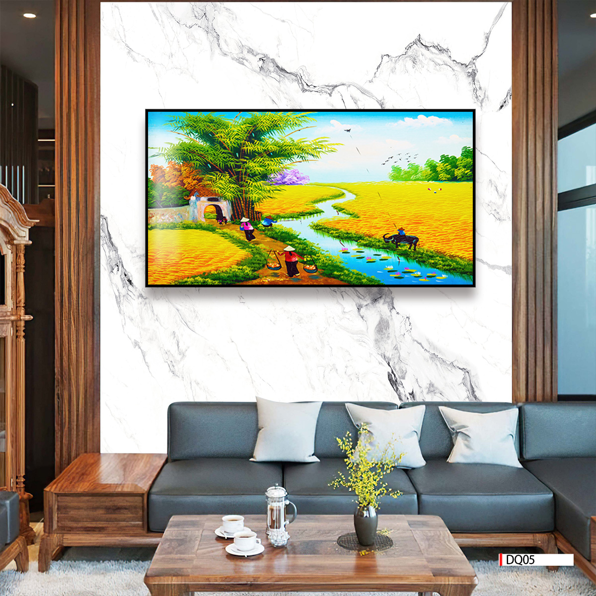| Thương hiệu: Tranh 3D Tùng Dương | Hình thức: tranh treo tường ghép bộ 3 bức | Tên: tranh Đồng quê |