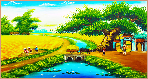 | Thương hiệu: Tranh 3D Tùng Dương | Hình thức: tranh treo tường ghép bộ 3 bức | Tên: tranh Đồng quê |