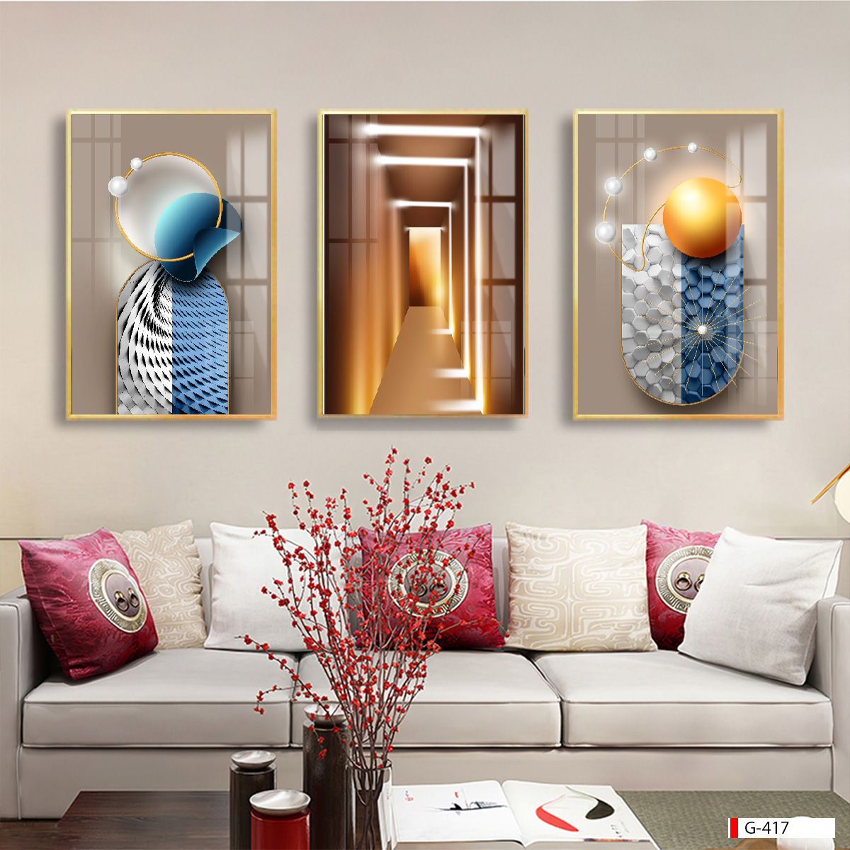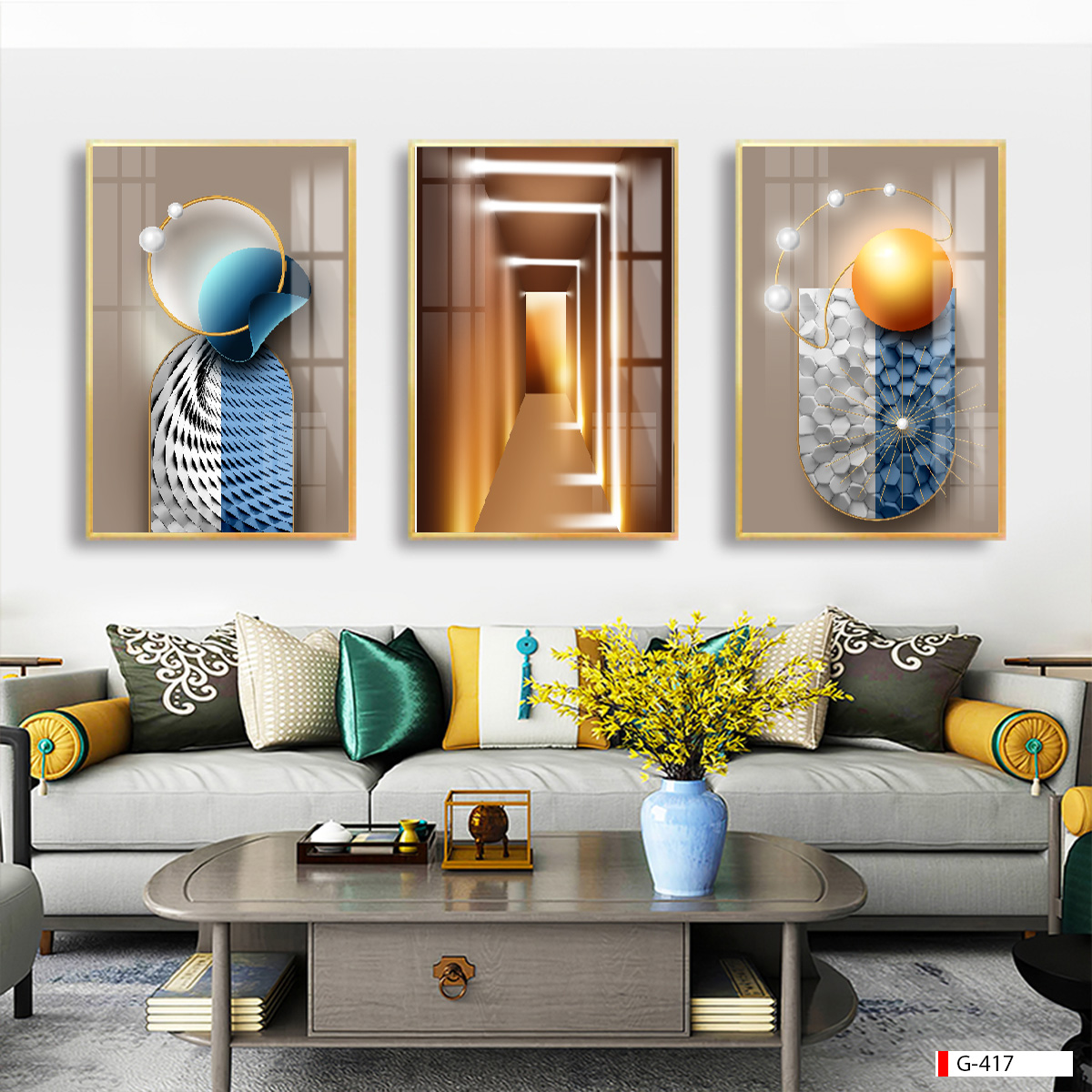 | Thương hiệu: Tranh 3D Tùng Dương | Hình thức: tranh treo tường ghép bộ 3 bức | Tên: tranh hiện đại trừu tượng |