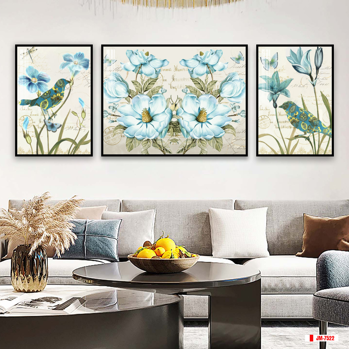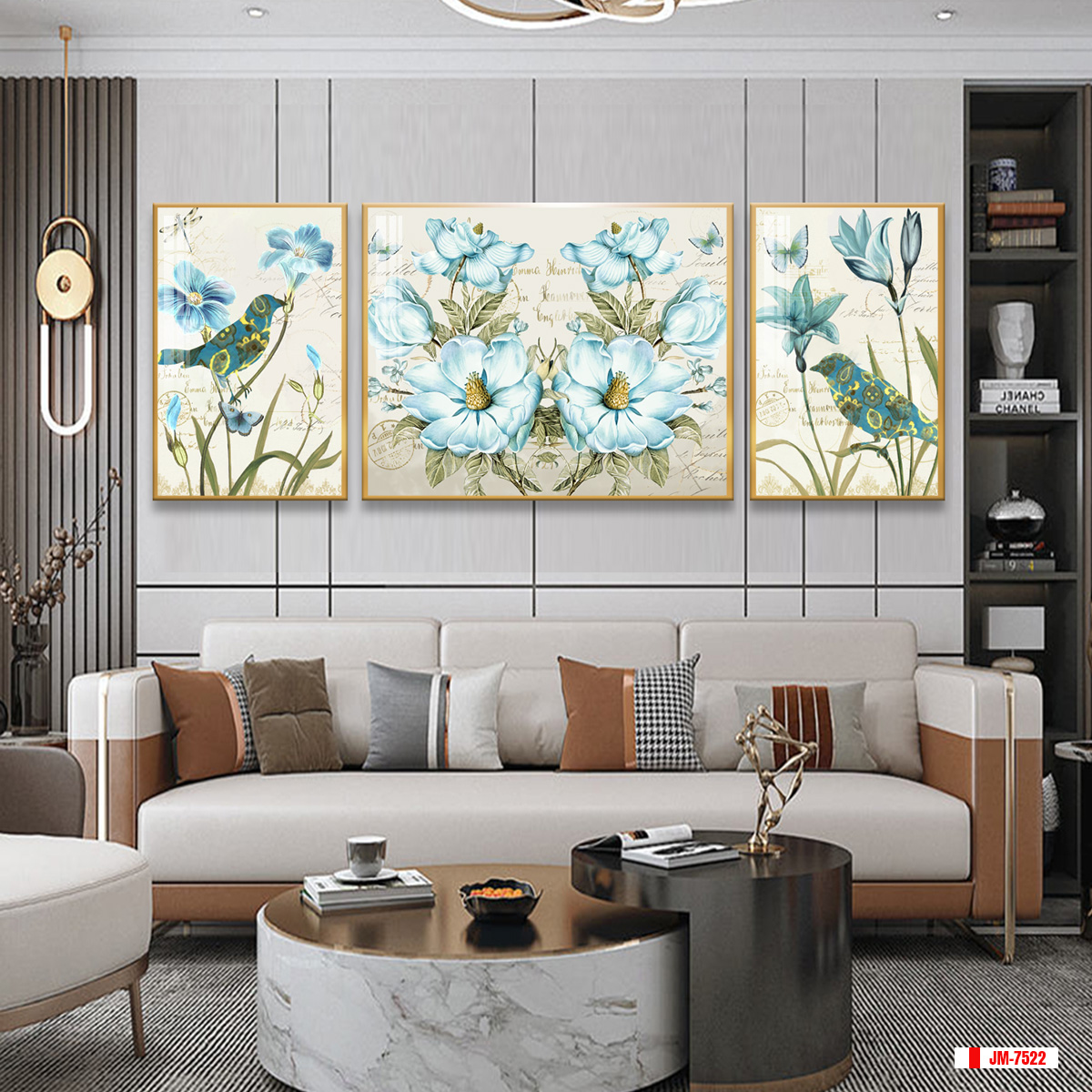 TRANH HOA TREO TƯỜNG PHÒNG KHÁCH GHÉP BỘ 3 BỨC