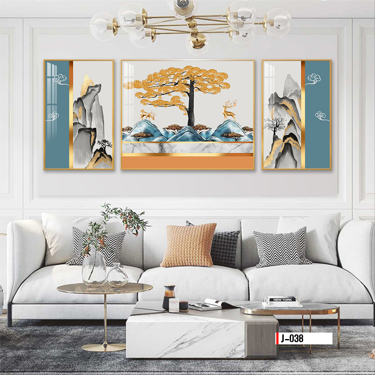 | Thương hiệu: Tranh 3D Tùng Dương | Hình thức: tranh treo tường ghép bộ 3 bức | Tên: tranh Kim tiền Hươu tài lộc |