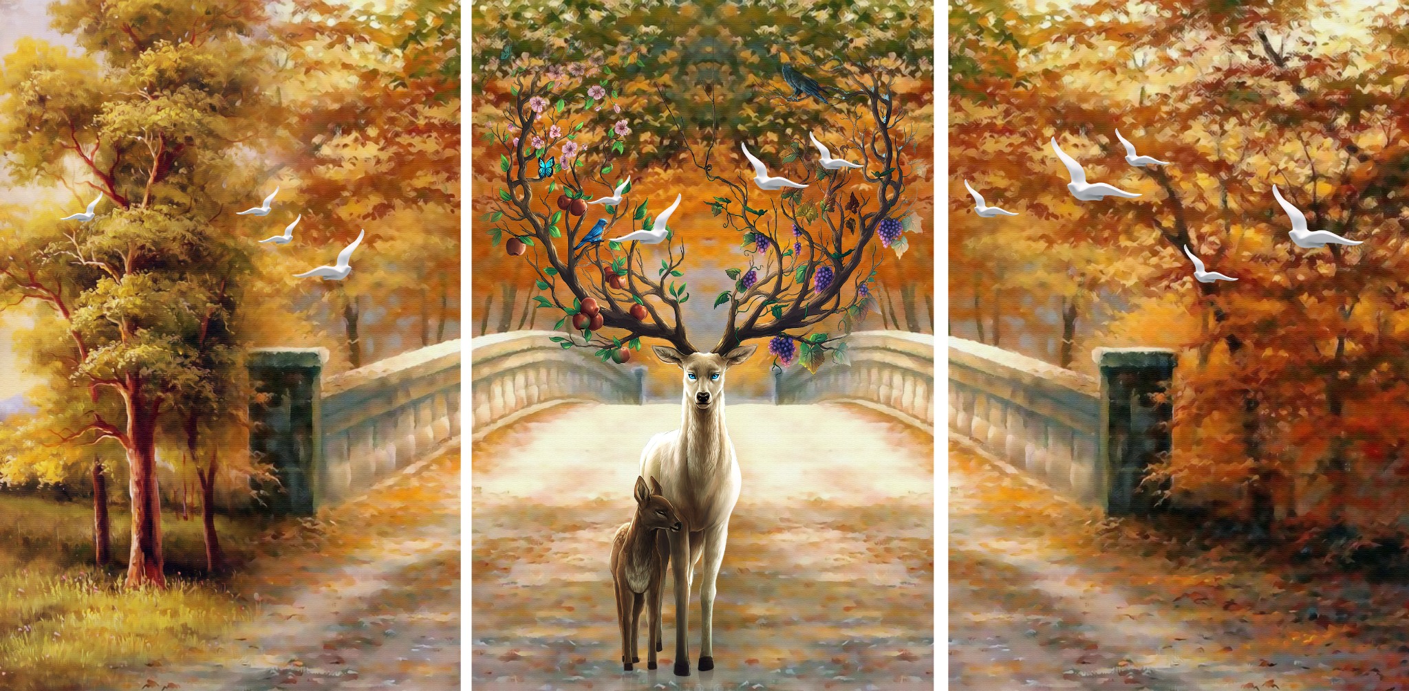 | Thương hiệu: Tranh 3D Tùng Dương | Hình thức: tranh treo tường khổ lớn | Tên: tranh Hươu tài lộc |