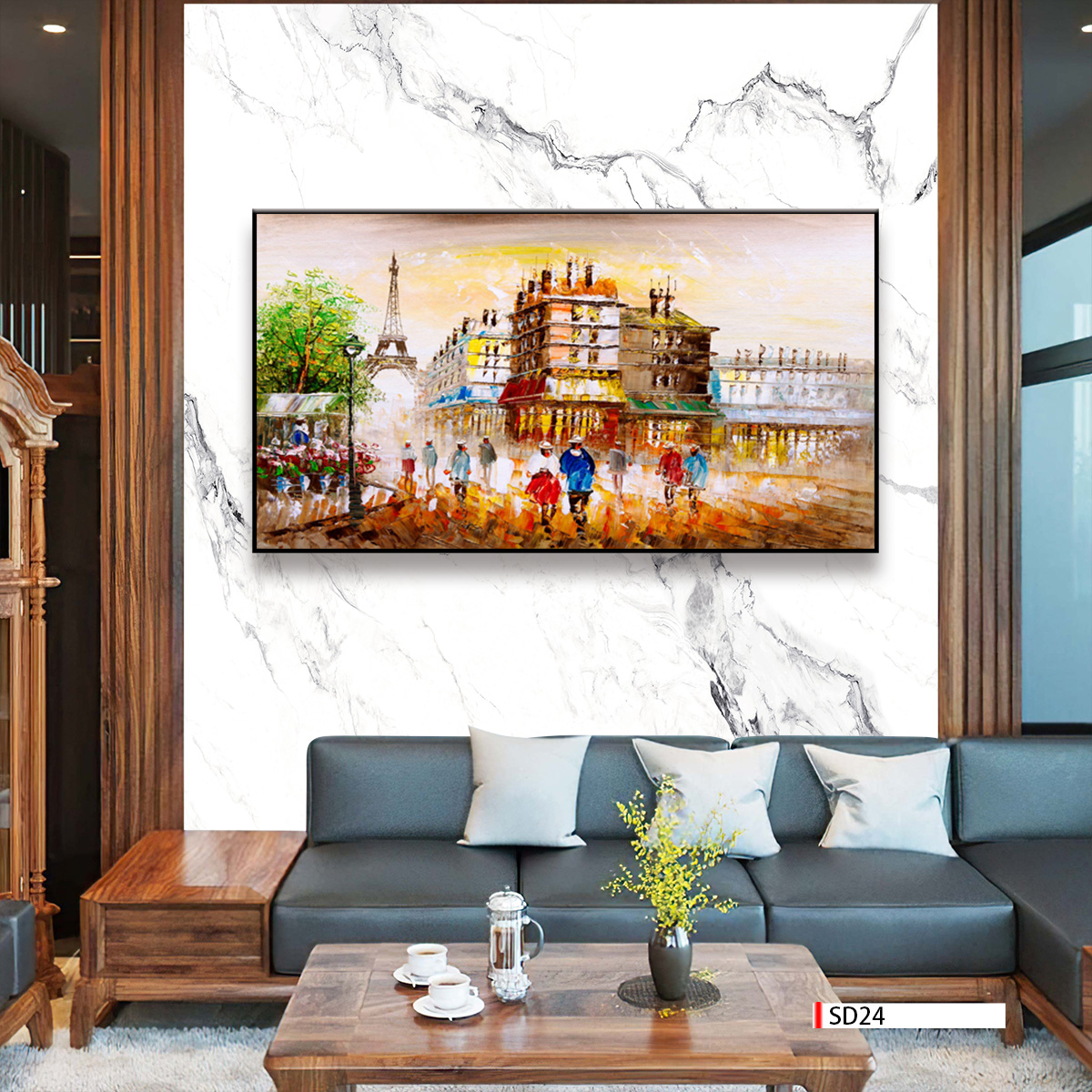 Từ trước đến nay, tranh treo tường phong cảnh Châu Âu rất được yêu thích và ưa chuộng rộng rãi. Không quá cầu kì, không quá rực rỡ, mẫu tranh này vẫn luôn tỏa sáng, mang một nét đặc trưng rất riêng, lãng mạn, trữ tình và đầy chất nhạc.