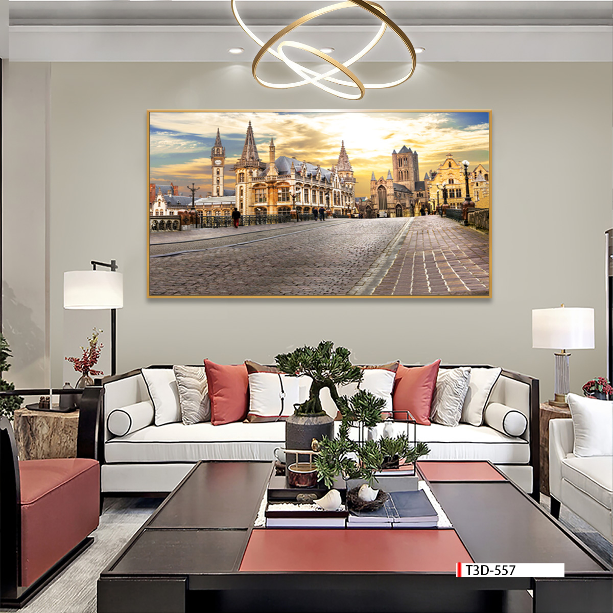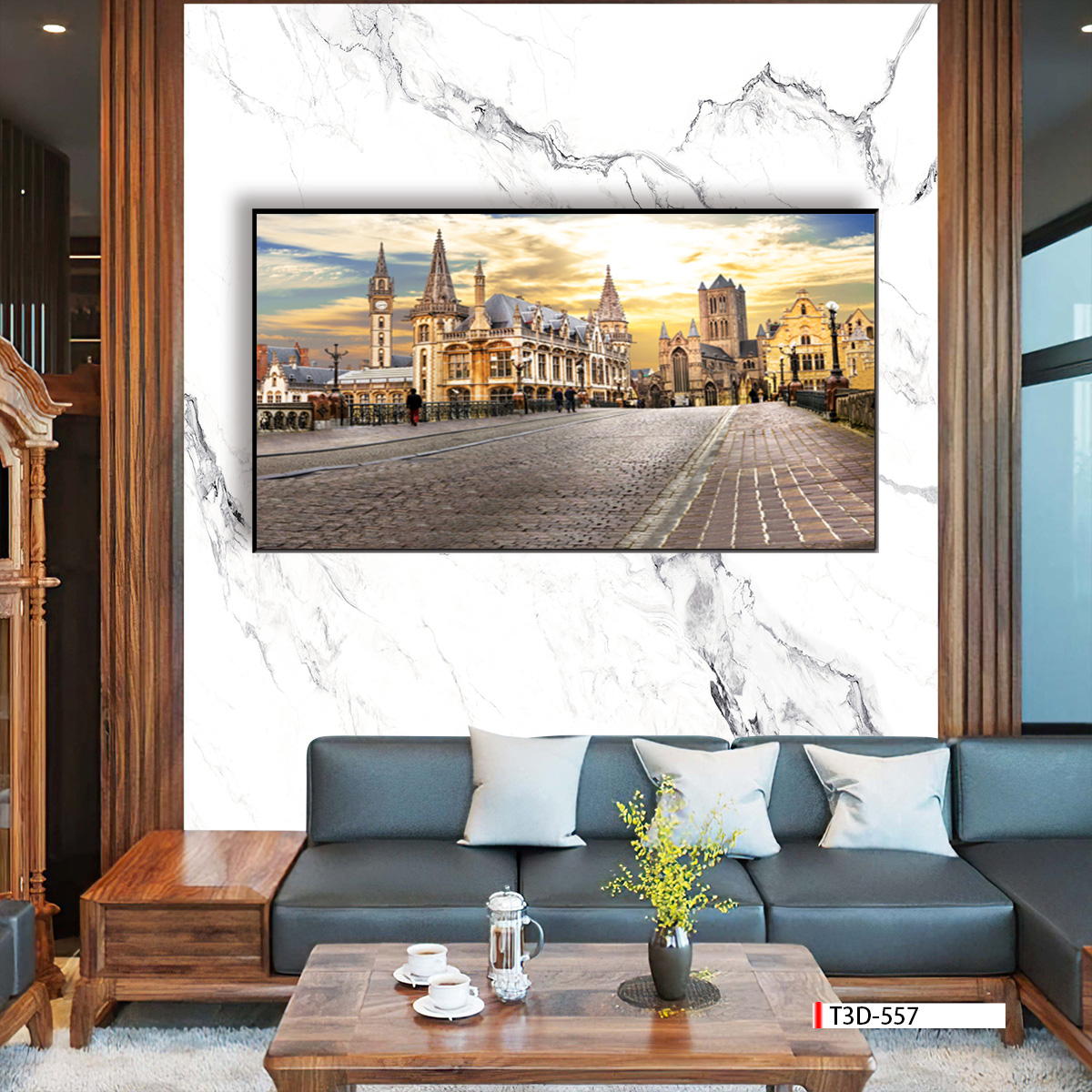 | Thương hiệu: Tranh 3D Tùng Dương | Hình thức: tranh treo tường khổ lớn | Tên: tranh Phong cảnh châu Âu hiện đại |