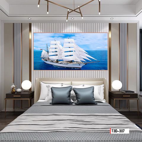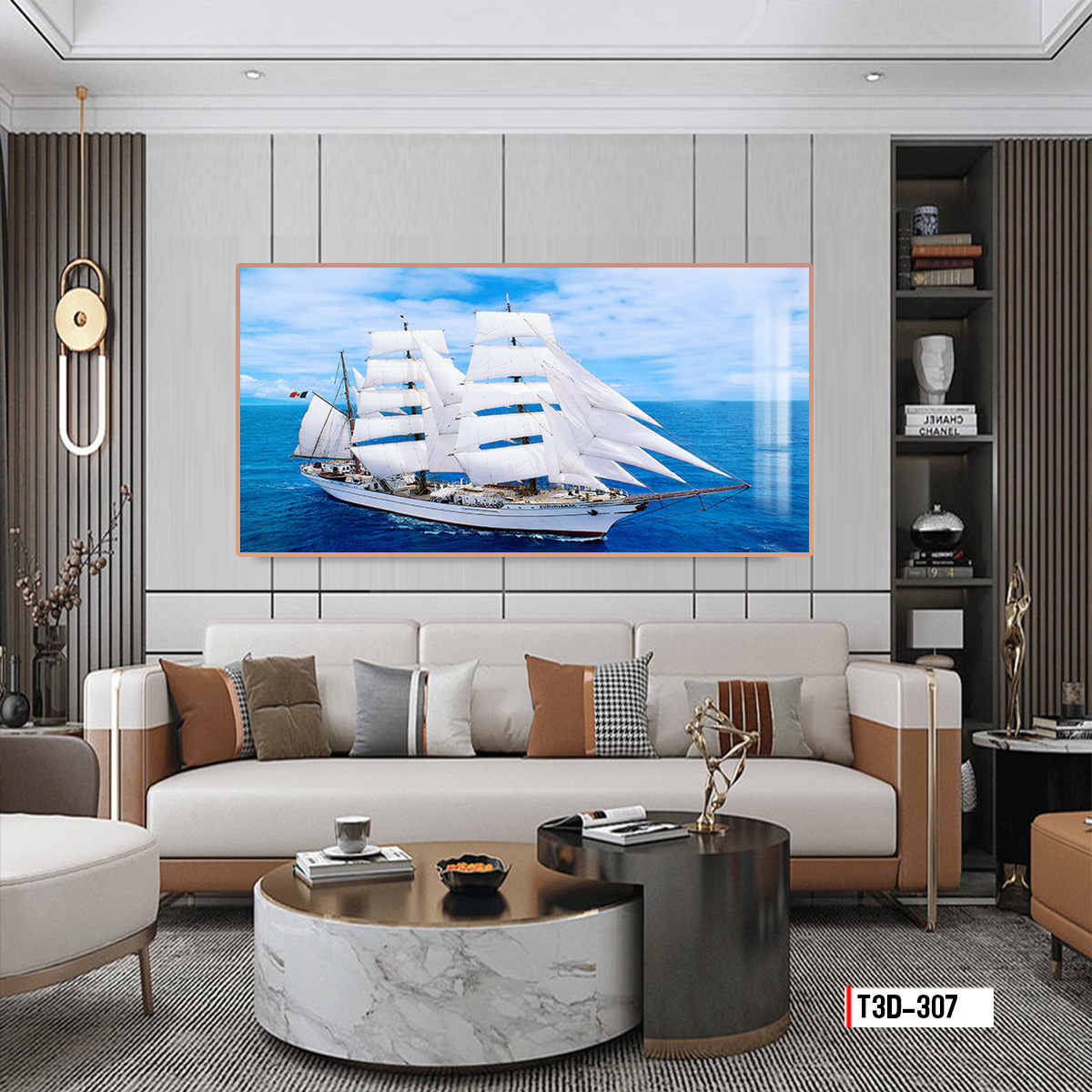 | Thương hiệu: Tranh 3D Tùng Dương | Hình thức: tranh treo tường ghép bộ 3 bức | Tên: tranh Thuận buồm xuôi gió |