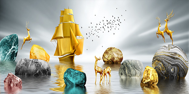| Thương hiệu: Tranh 3D Tùng Dương | Hình thức: tranh treo tường ghép bộ 3 bức | Tên: tranh Thuận buồm xuôi gió |