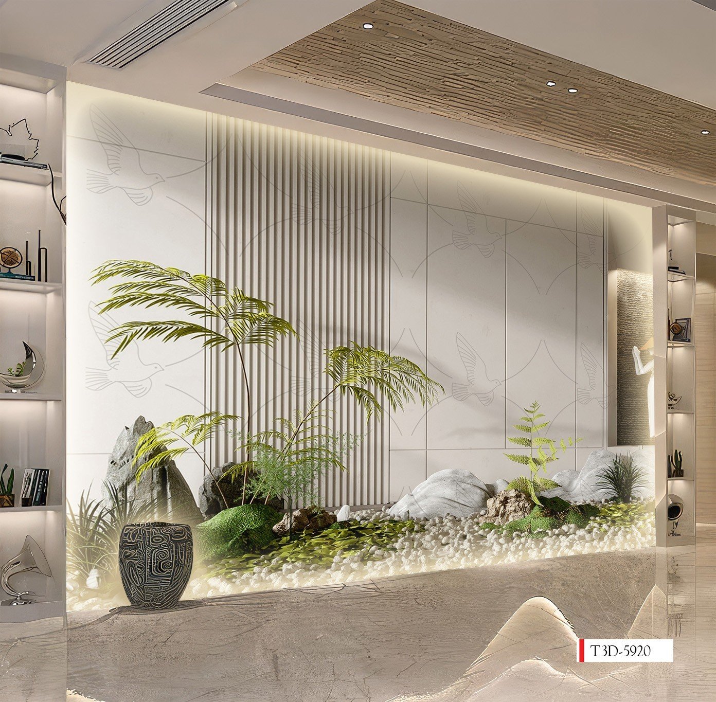 | Thương hiệu: Tranh 3D Tùng Dương | Hình thức: tranh vải dán tường | Họa tiết: tiểu cảnh cây xanh, núi đá |