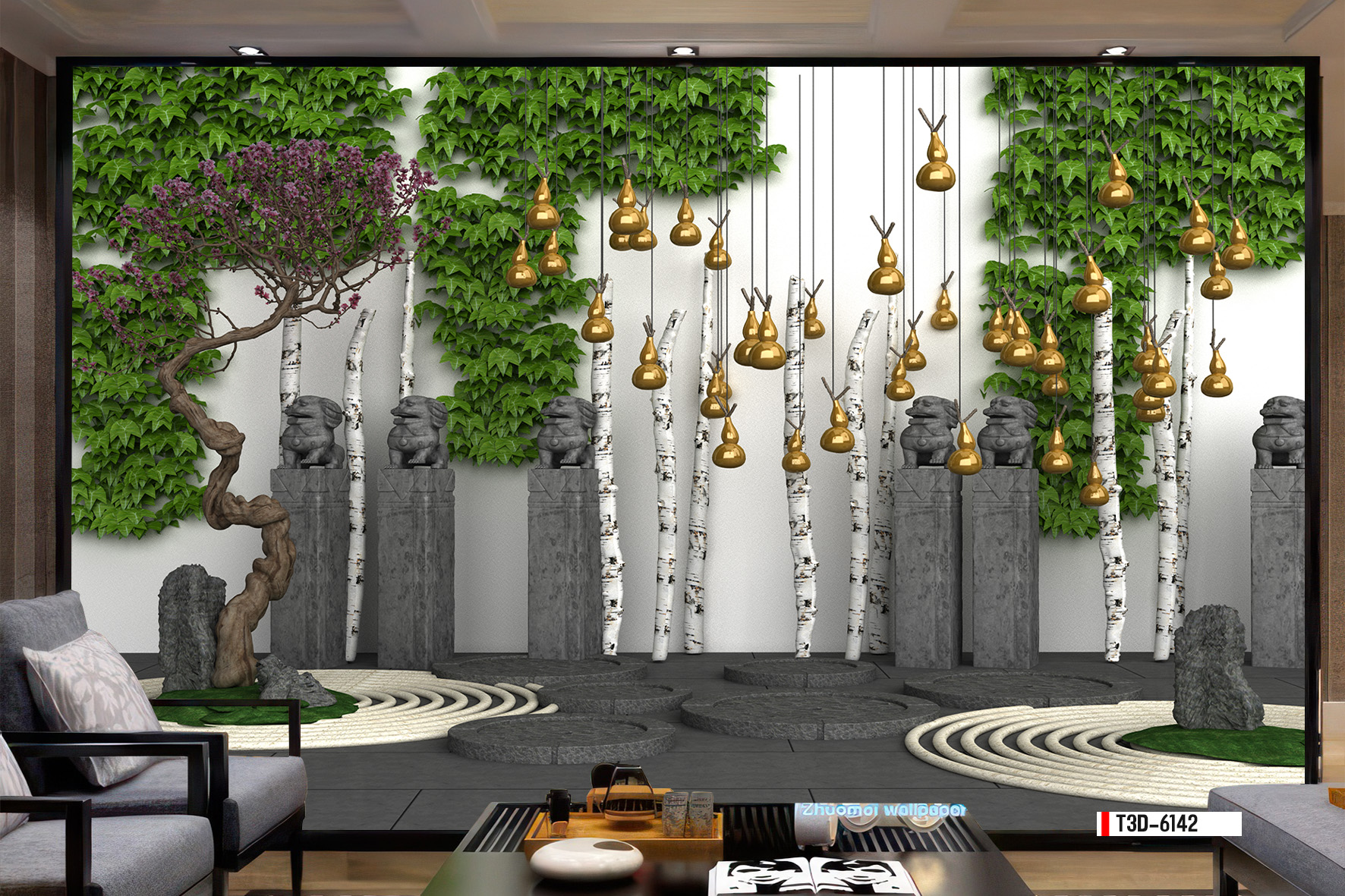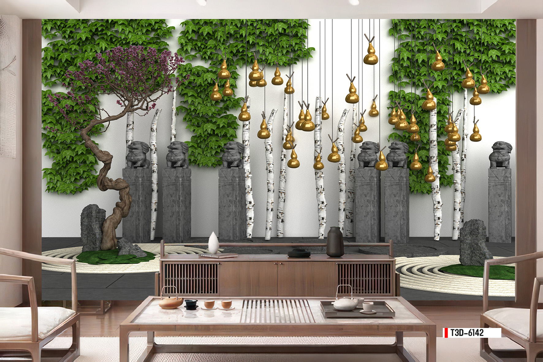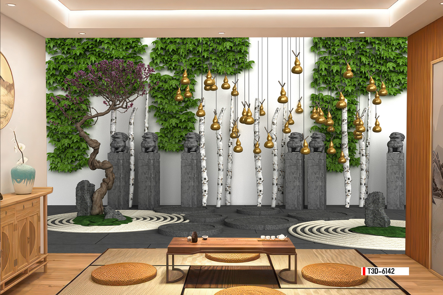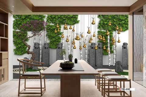 | Thương hiệu: Tranh 3D Tùng Dương | Hình thức: tranh vải dán tường | Họa tiết: tiểu cảnh cây xanh, núi đá |