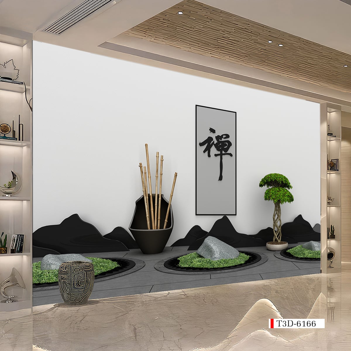 | Thương hiệu: Tranh 3D Tùng Dương | Hình thức: tranh vải dán tường | Họa tiết: tiểu cảnh cây xanh, núi đá |