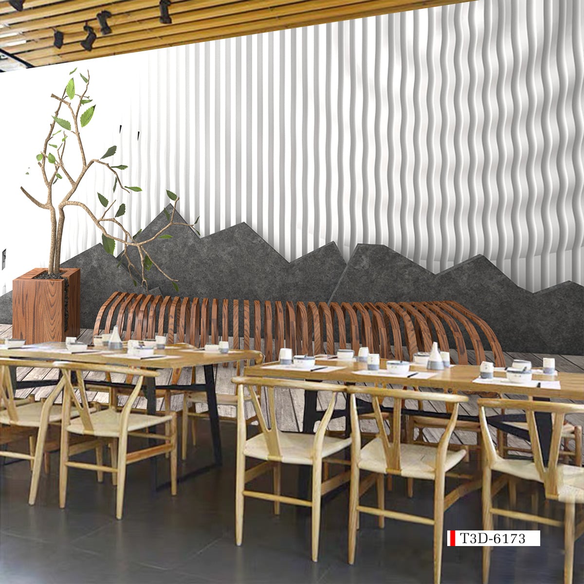 TRANH VẢI DÁN TƯỜNG NHÀ HÀNG TIỂU CẢNH