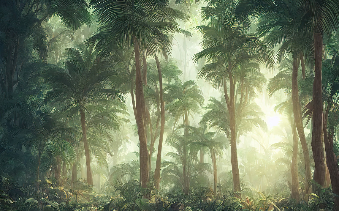 Tranh dán tường phong cách tropical nhiệt đới đặc biệt với màu xanh dịu mát làm chủ đạo và các họa tiết từ thiên nhiên như lá cọ, lá dừa… Thoải mái, thanh bình, thư giãn, gần gũi là tất cả cung bậc cảm xúc mà tranh dán tường phong cách Tropical trong thiết kế nội thất mang đến cho không gian sống.