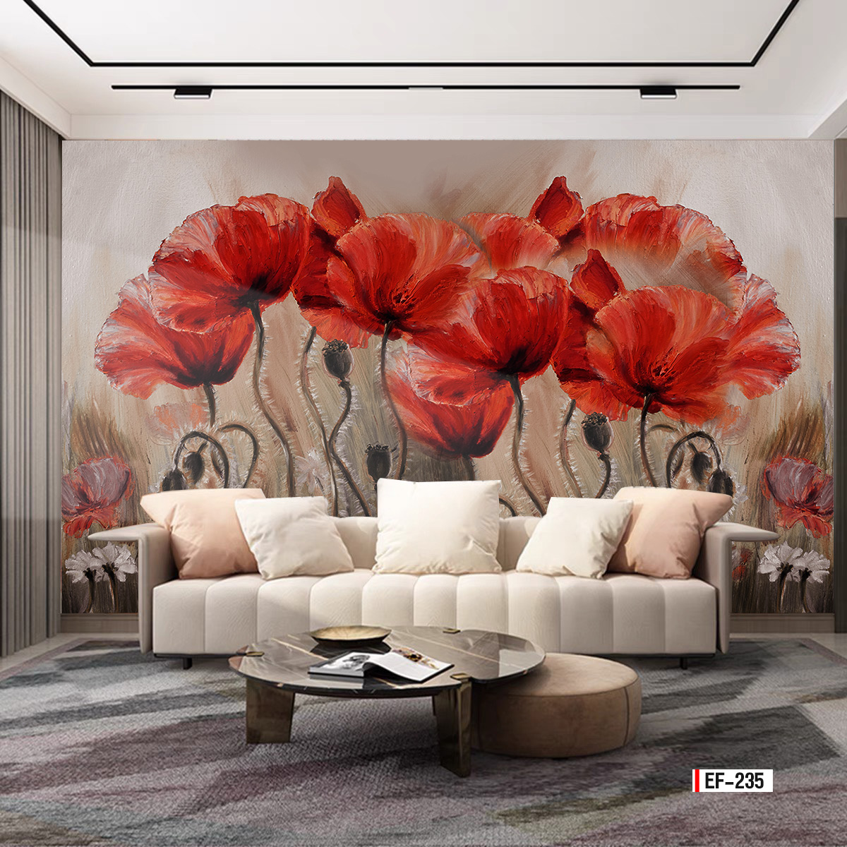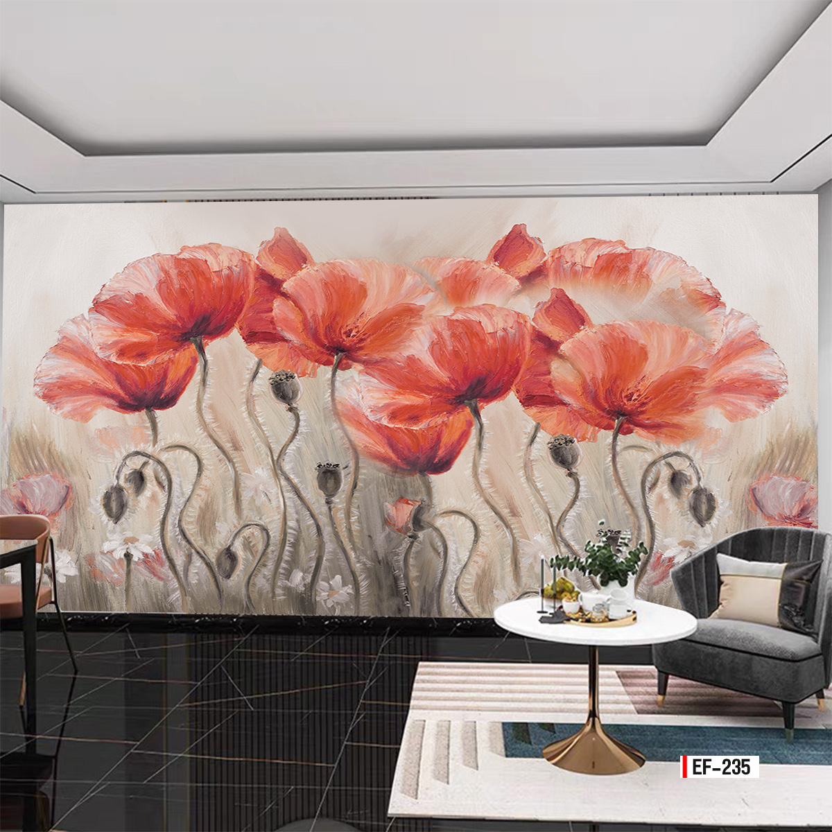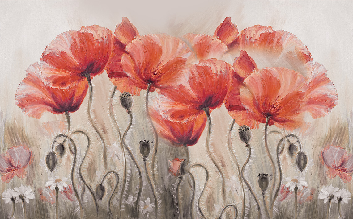 Tranh vải dán tường 3d phòng khách phong cách Hoa 3D