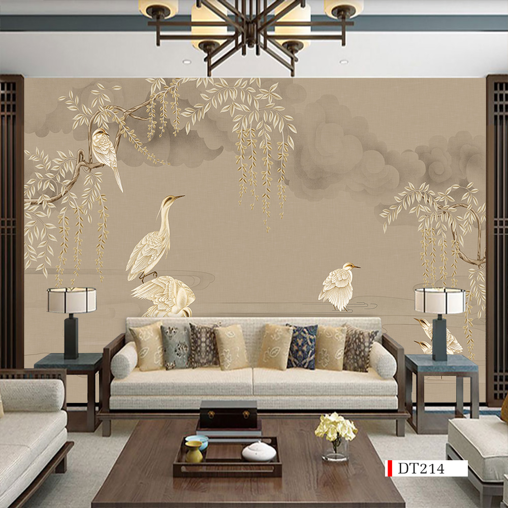 - Tranh vải 3D dán tường - vải lụa kim sa phủ bóng ít bám bụi, dễ lau chùi vệ sinh, thi công nhanh gọn.