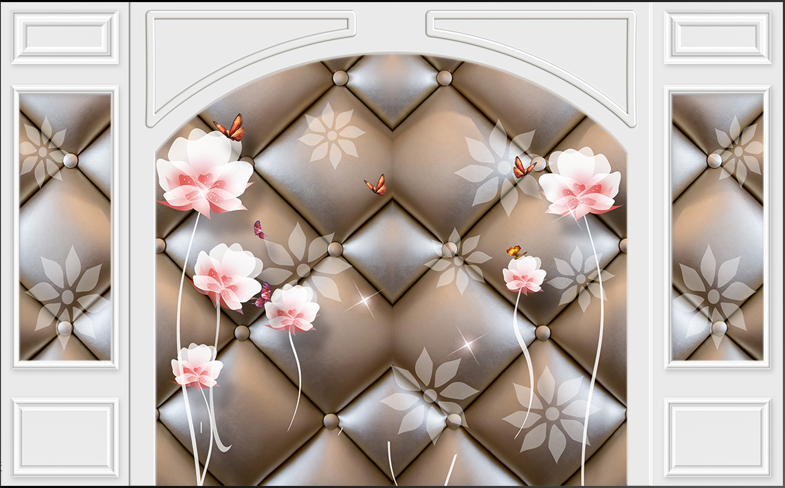 Tranh vải dán tường 3d phòng khách phong cách Hoa 3D