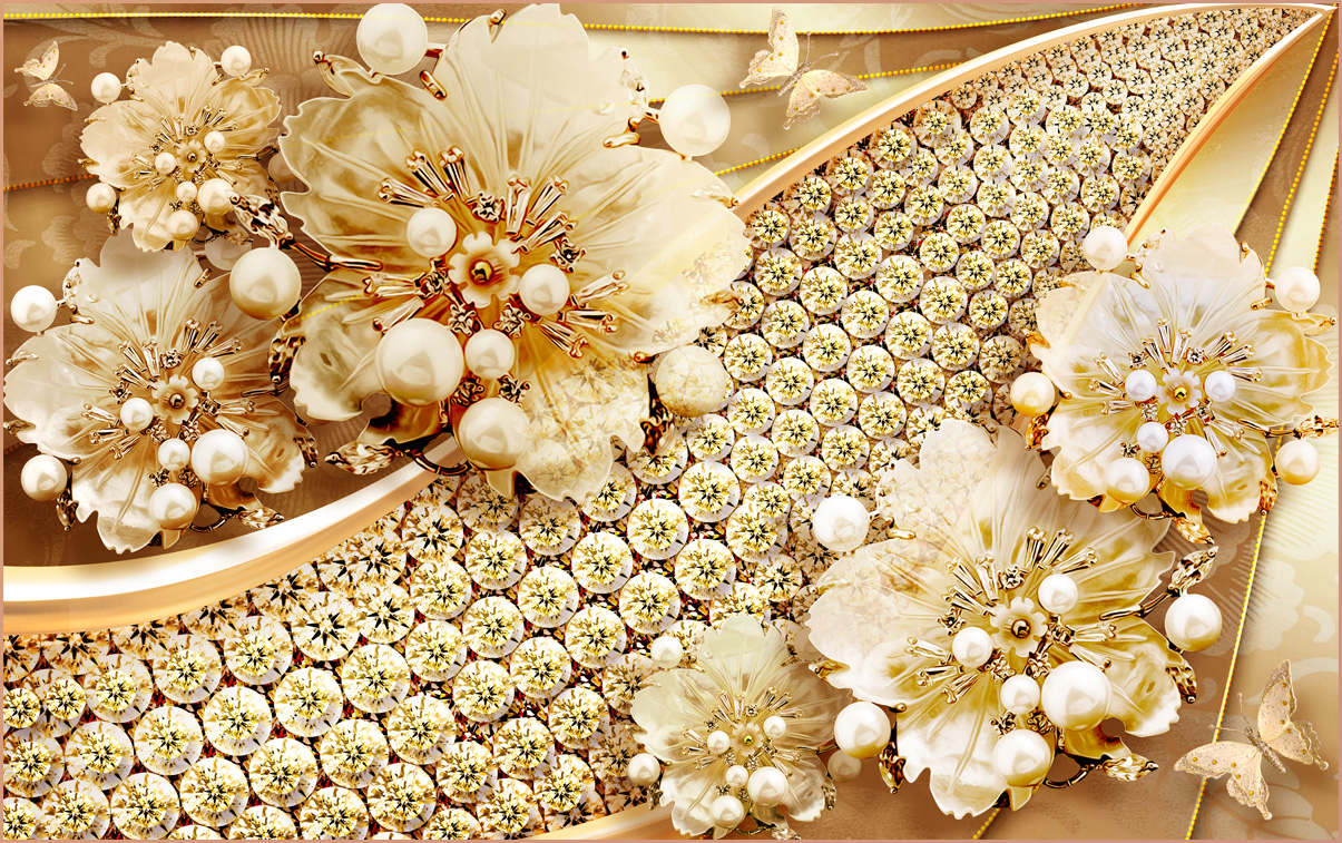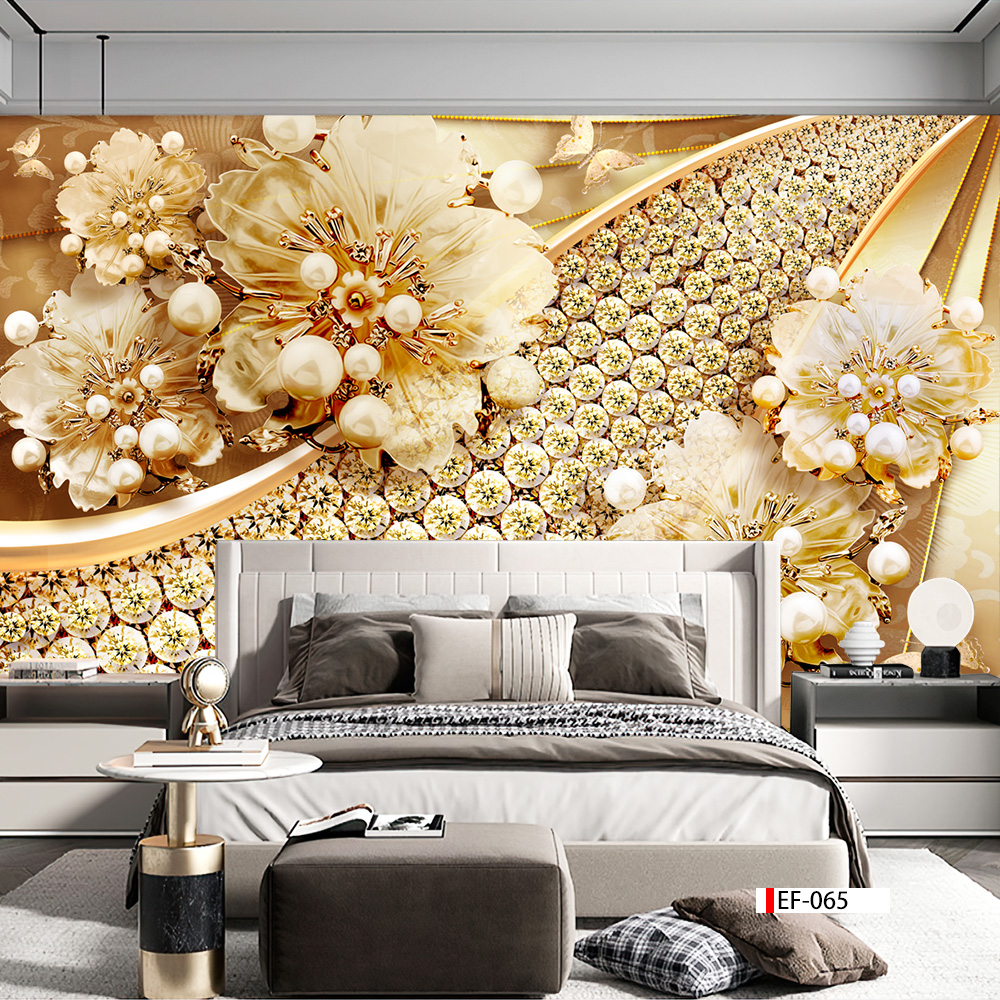 Tranh vải dán tường 3d phòng khách phong cách Hoa 3D