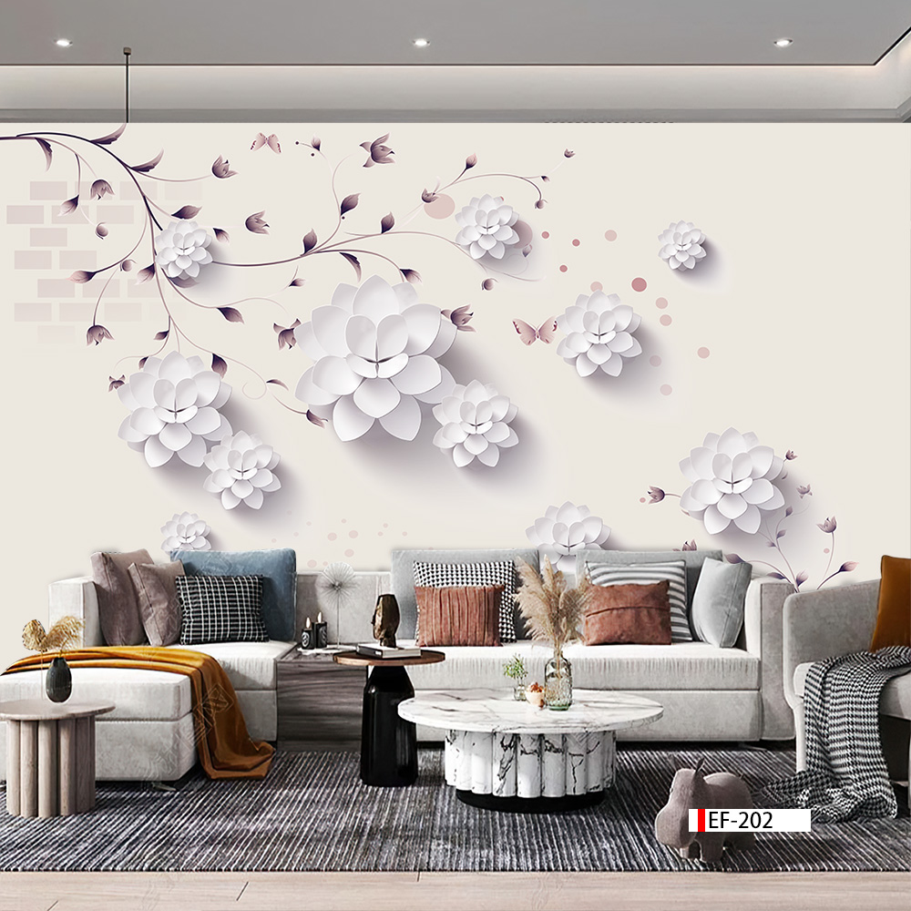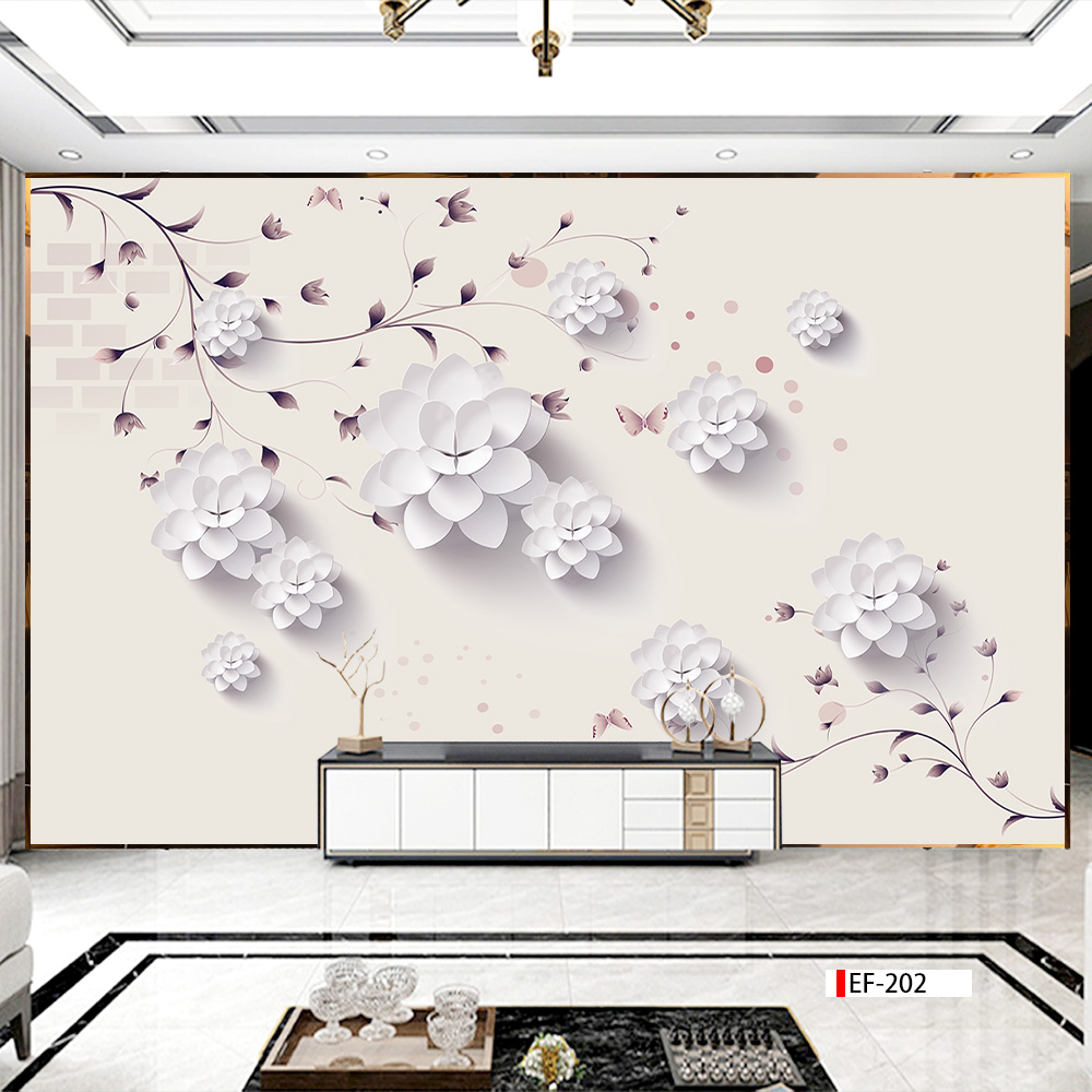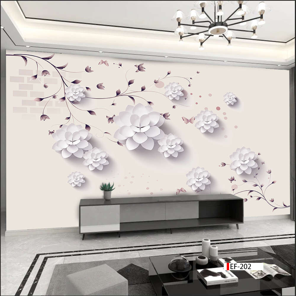 Tranh vải dán tường 3d phòng khách phong cách Hoa 3D