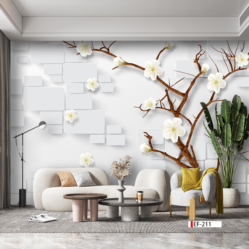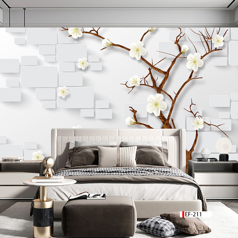 Tranh dán tường phong cách Hoa 3D điển chú trọng nhiều đến sự đơn giản, cân đối trong các đường nét thiết kế. Tuy nhiên, chúng vẫn mang lại cho căn hộ một vẻ đẹp thanh lịch, sang trọng, đầy quý phái theo thời gian.