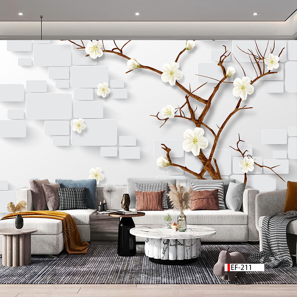 Tranh vải dán tường 3d phòng khách phong cách Hoa 3D