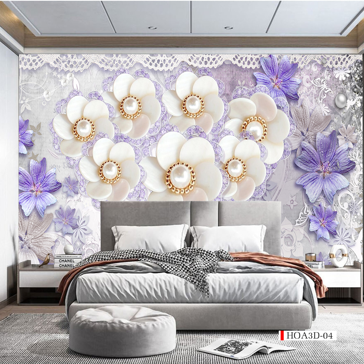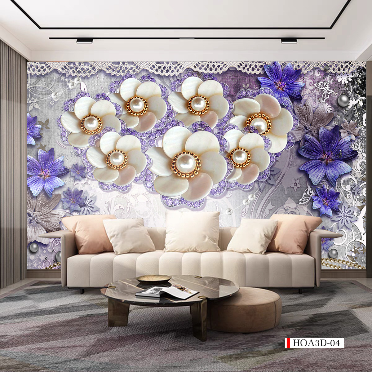 TRANH DÁN TƯỜNG PHÒNG KHÁCH HOA 3D
