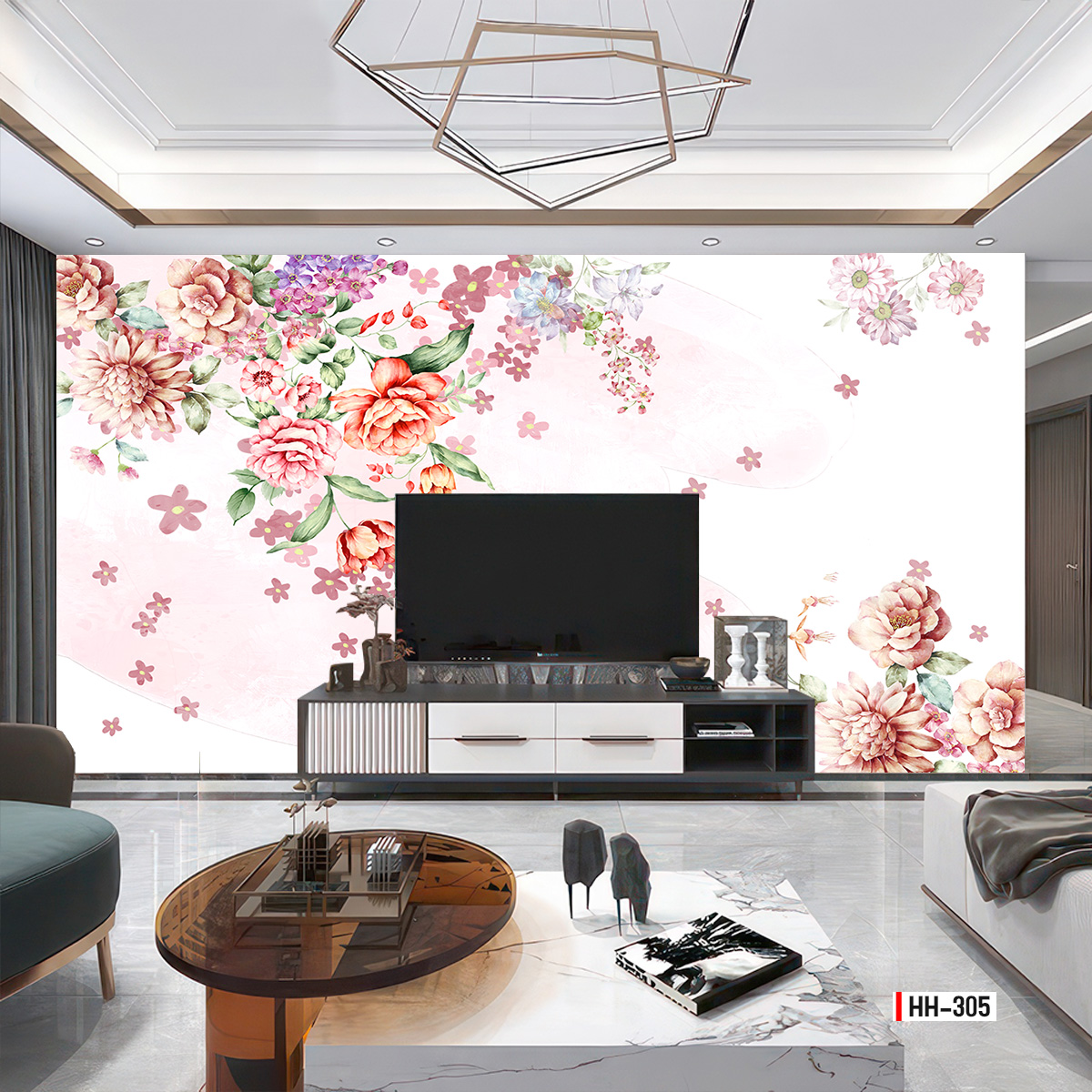 Tranh vải dán tường 3d phòng khách phong cách Hoa 3D