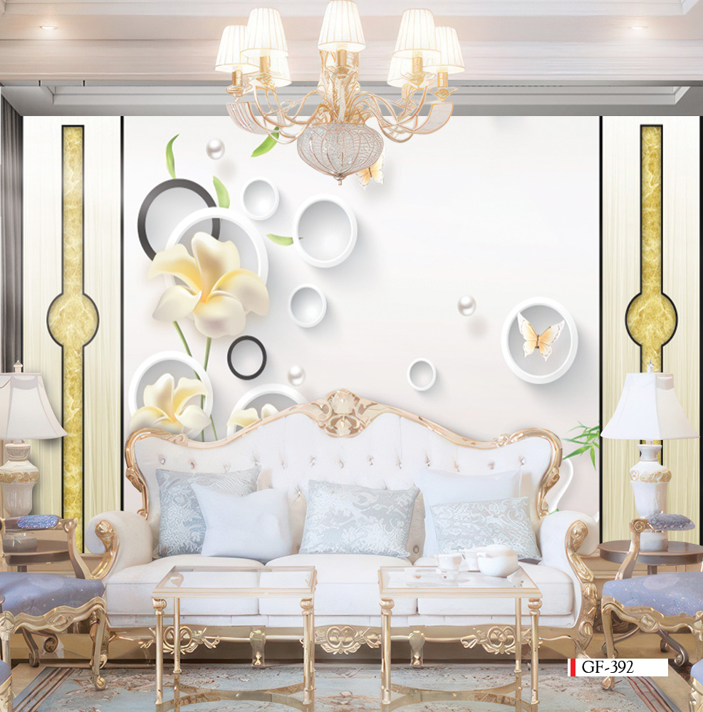 Tranh vải dán tường 3d phòng khách phong cách Tân cổ điển