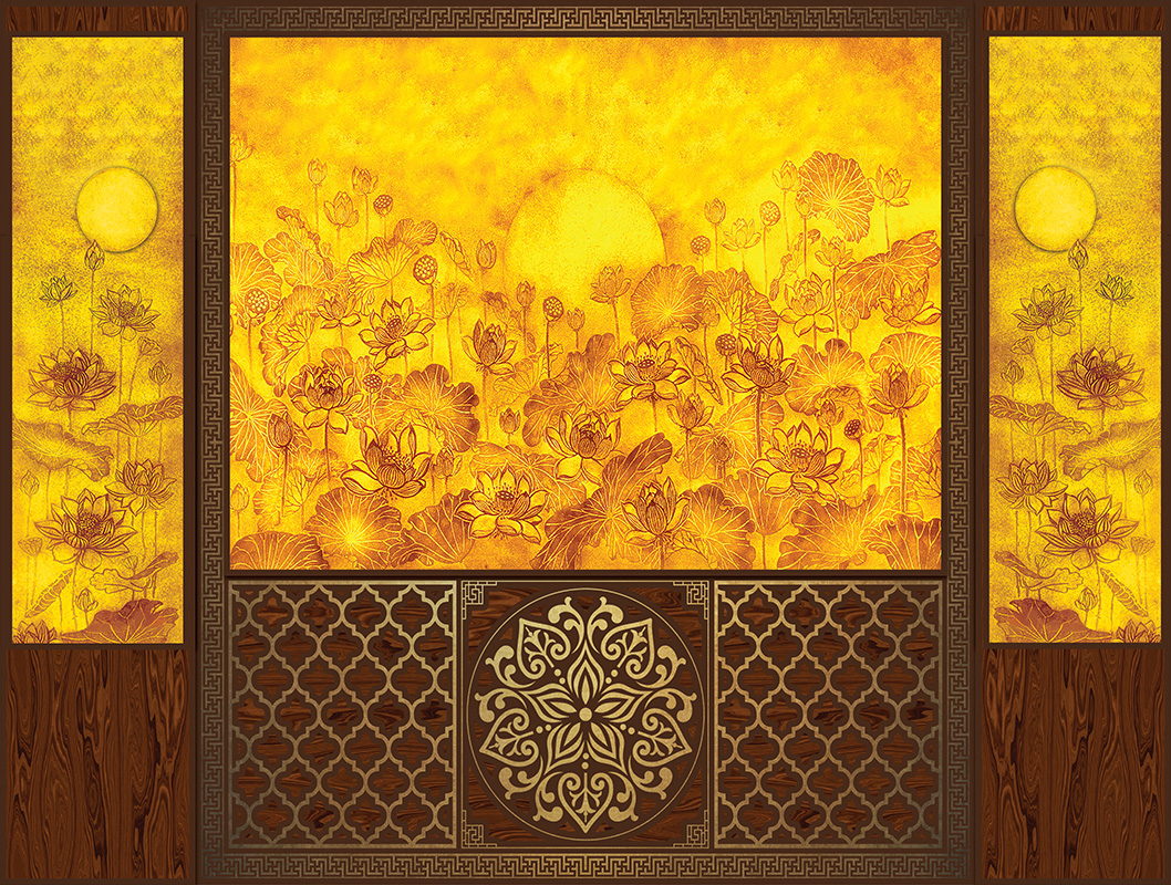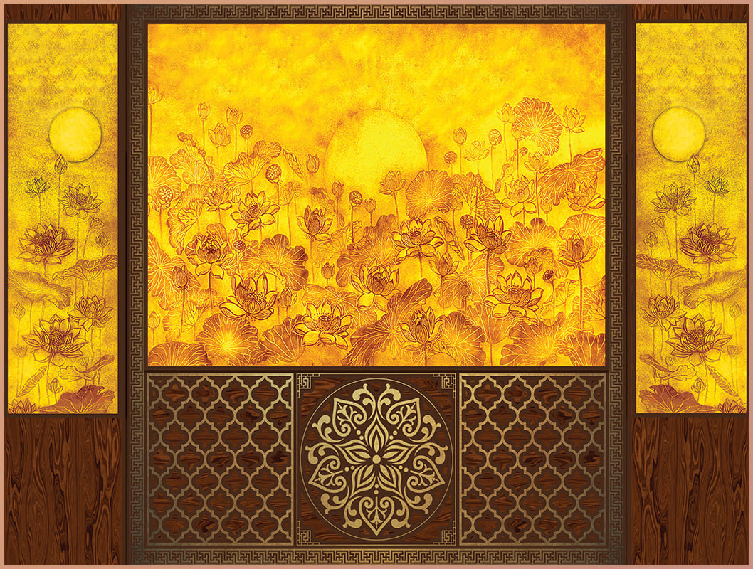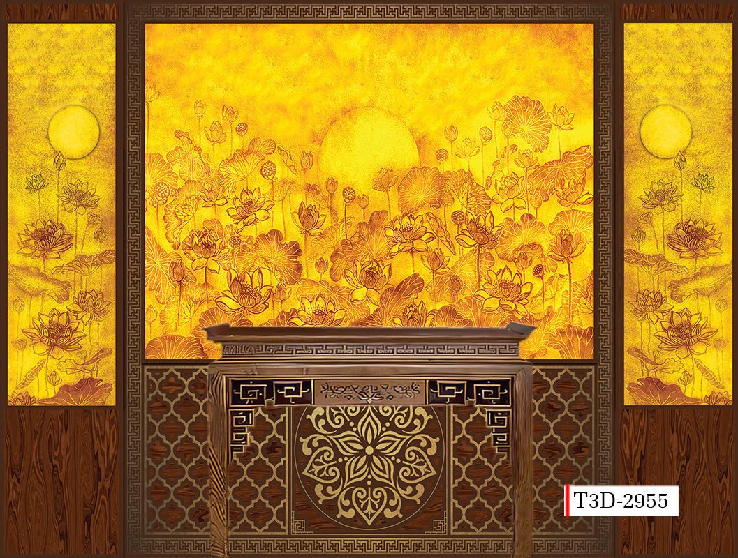 Phòng thờ là nơi linh thiêng nhất trong gia đình, chính vì thế chọn các mẫu tranh dán tường phải là những bức tranh có nội dung và màu sắc phù hợp, màu sắc không nên quá chói và lòe loẹt gây mất phong thủy, nên chọn các mẫu tranh dán tường có màu sắc trầm ấm, chủ yếu là gam màu vàng sáng.